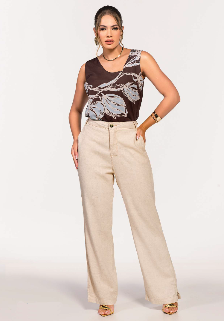 Conjunto linho pantalona com blusa - ref: MS32663 - R$ 1.389,90 em 6x de R$ 231,65